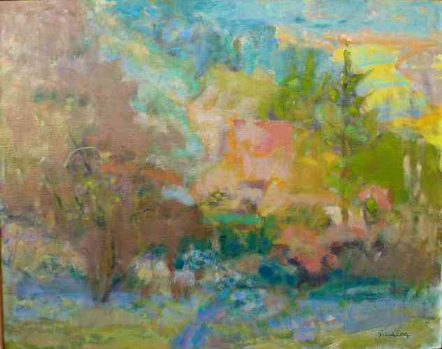 | Józef Gazda - Malarstwo > Galeria 2 | Motyw zrwonym dachem 80x100cm olej-plotno 1999 |